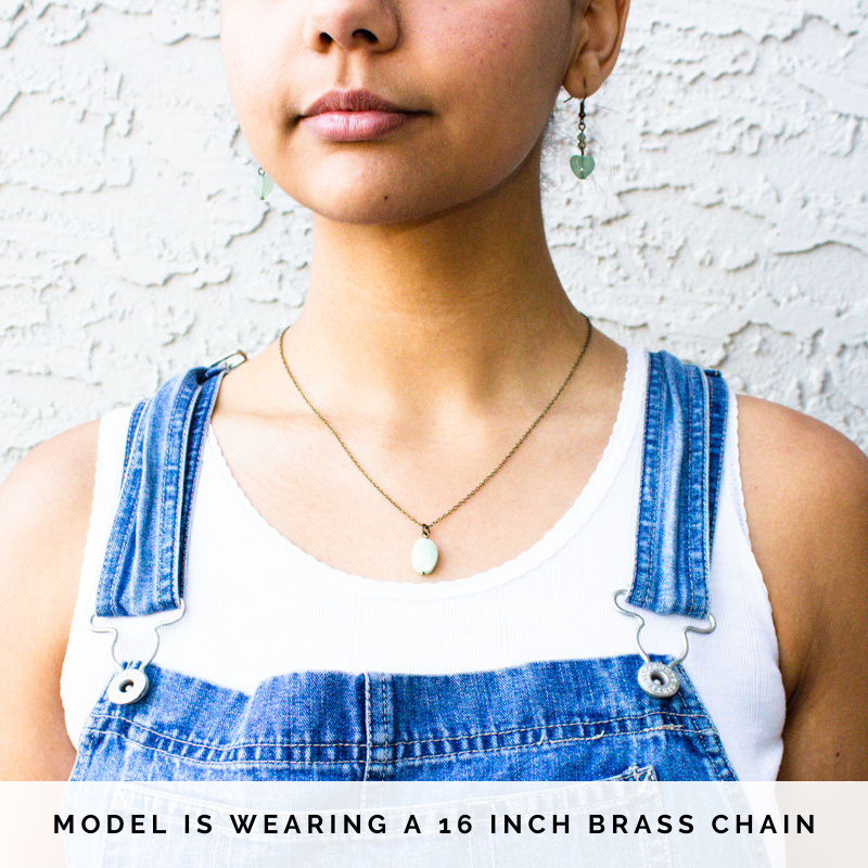 Model is wearing a 16 inch brass chain.
