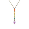 Align your energy with this Rainbow Pebble Y Necklace featuring linked gemstones that flow into a polished amethyst pebble. Carnelian for confidence, citrine for willpower, peridot for abundance, malachite for transformation, and amethyst for spirituality create a balanced spectrum of uplifting meaning. Let this elegant necklace remind you to stay grounded in strength while opening yourself to peace and higher wisdom.